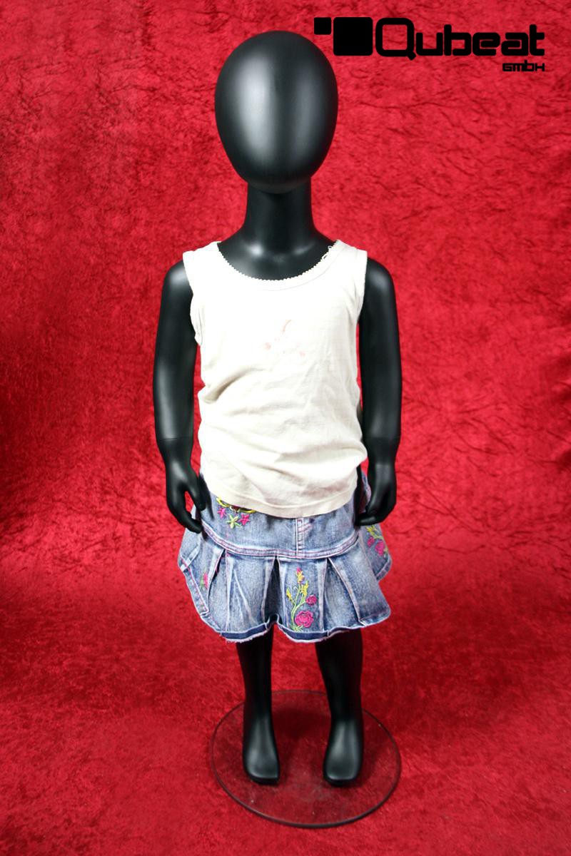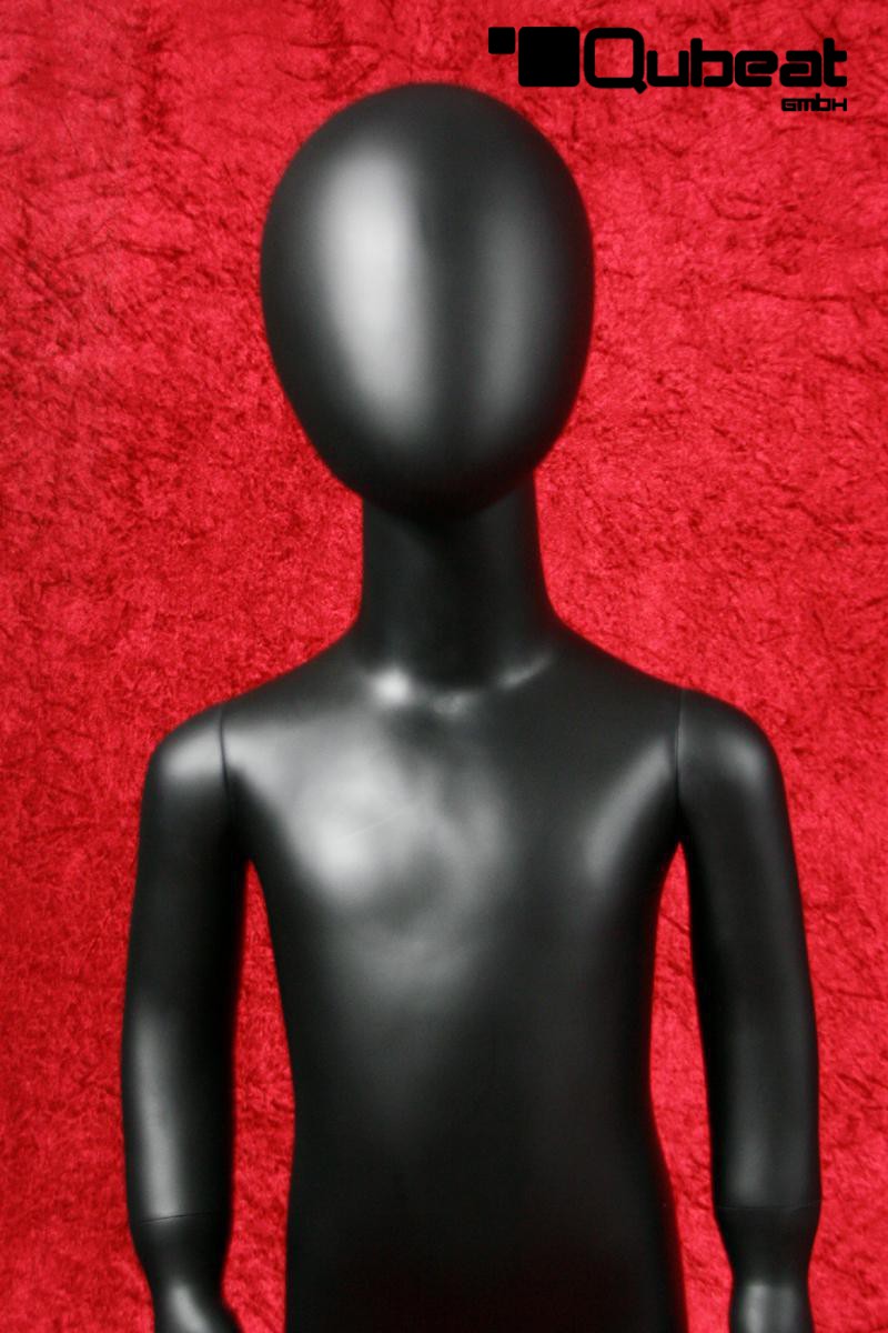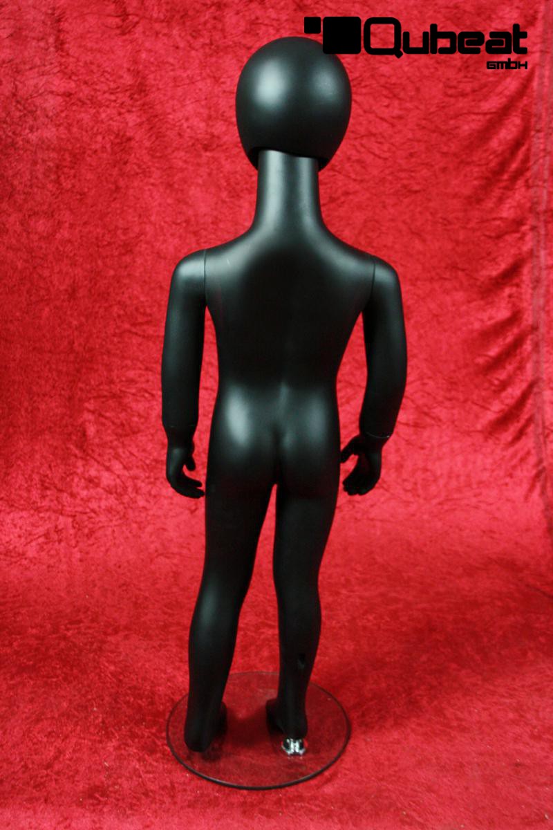The window mannequin in Black colour is faceless. The head can be rotated . A special feature of this mannequin are the movable arms. Joints on the elbow allow it to change the arms position individually. This has the advantage of coordinating mannequins to each other when they stand in the same shop window. This article has a metal thorn on a glass top on which the mannequin can be fixed. Which gives it stable and safe posture. This mannequin is slim. Is fixed through the foot.